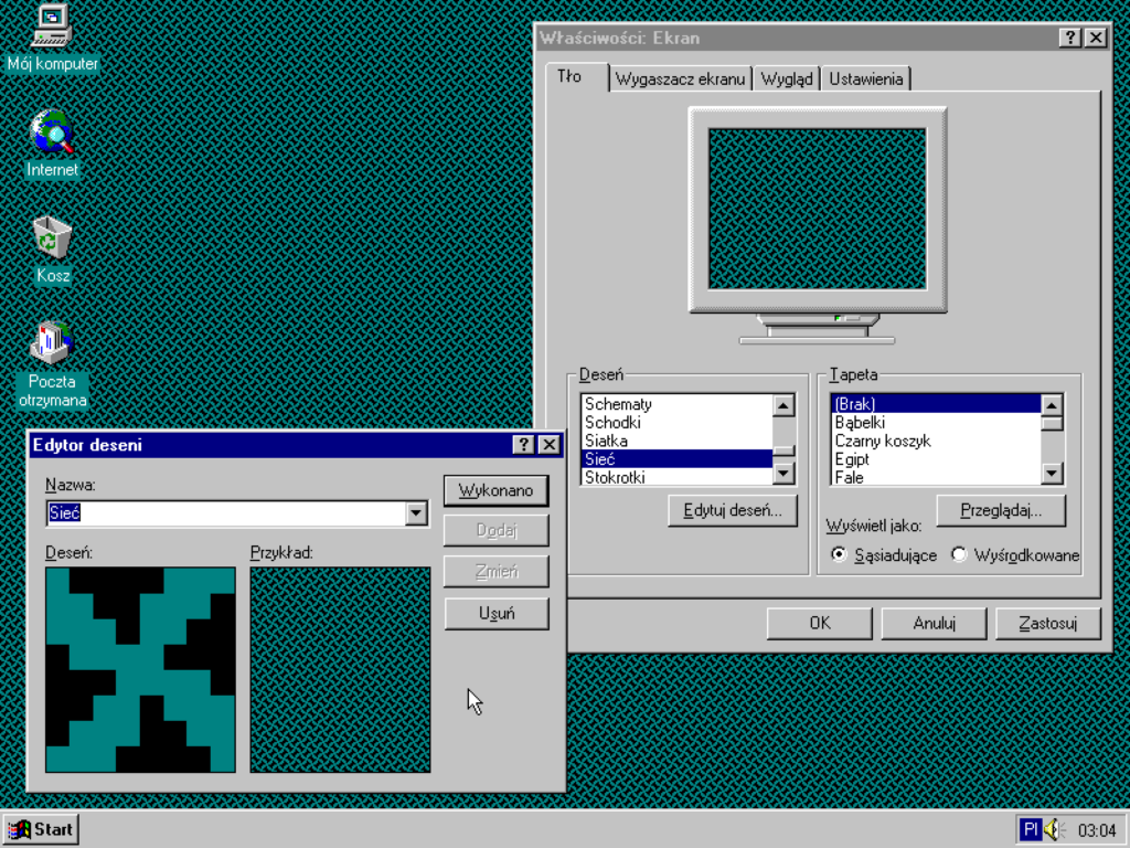 Efektywny brak możliwości użycia dużych obrazków nie oznaczał, że pulpit zawsze był nudnym, jednokolorowym prostokątem.
